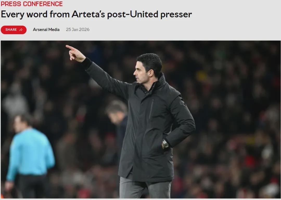 阿尔特塔出席了赛后新闻发布会,我们简要看看阿森纳主帅的发言。